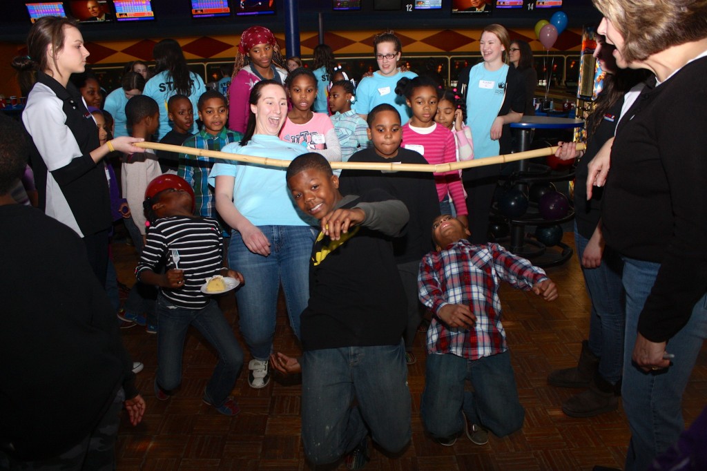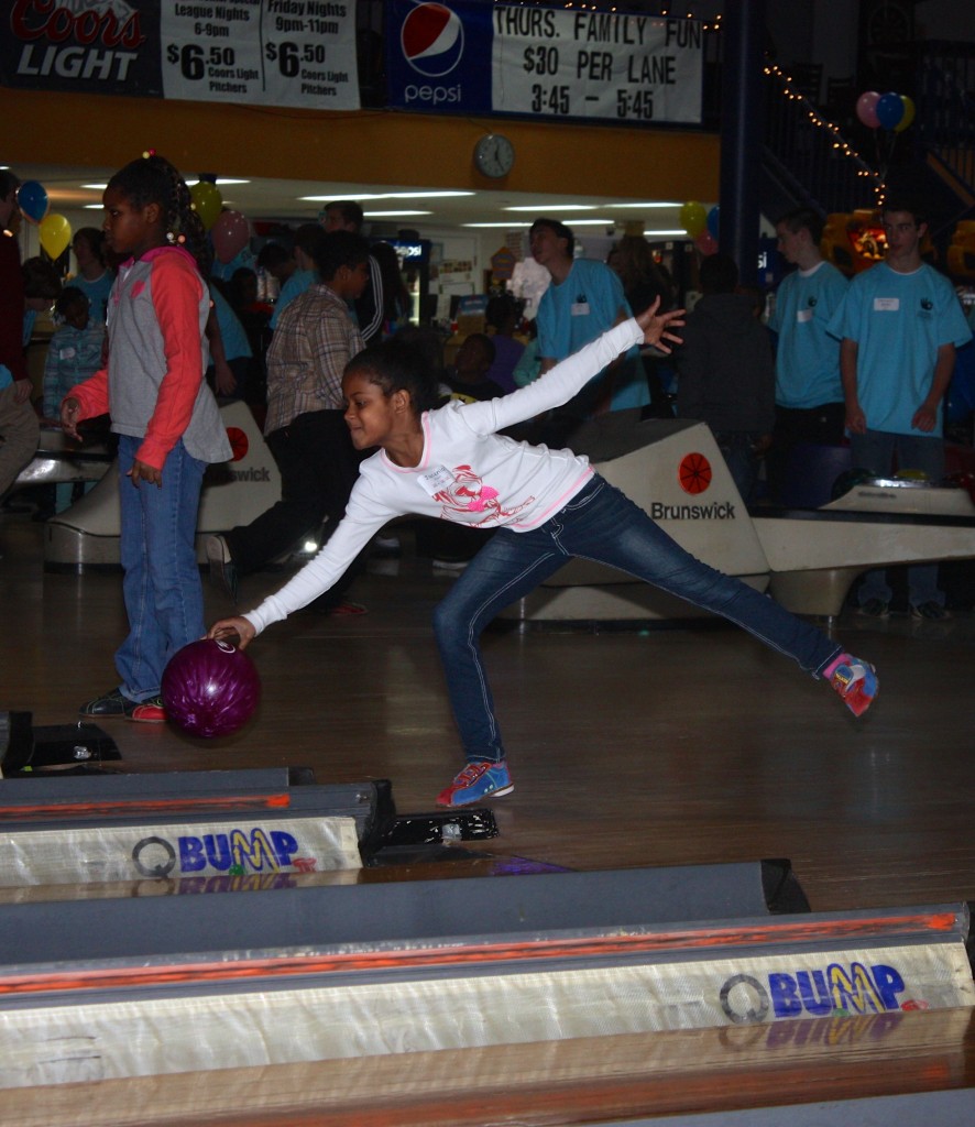 Henderson High School juniors Jessie Demmert and Ally Brooks organized the Open Bowl at the Palace Bowling and Entertainment Center in Downingtown.  The girls invited 80 Chester 1st through 4th graders to bowl in lanes with high school students, college students and some families from the West Chester area.  Considering all the snow, ice and cold weather this area has endured this winter, we are grateful that we were able to transport everyone to the Palace and back safely!