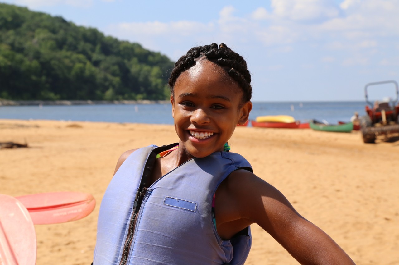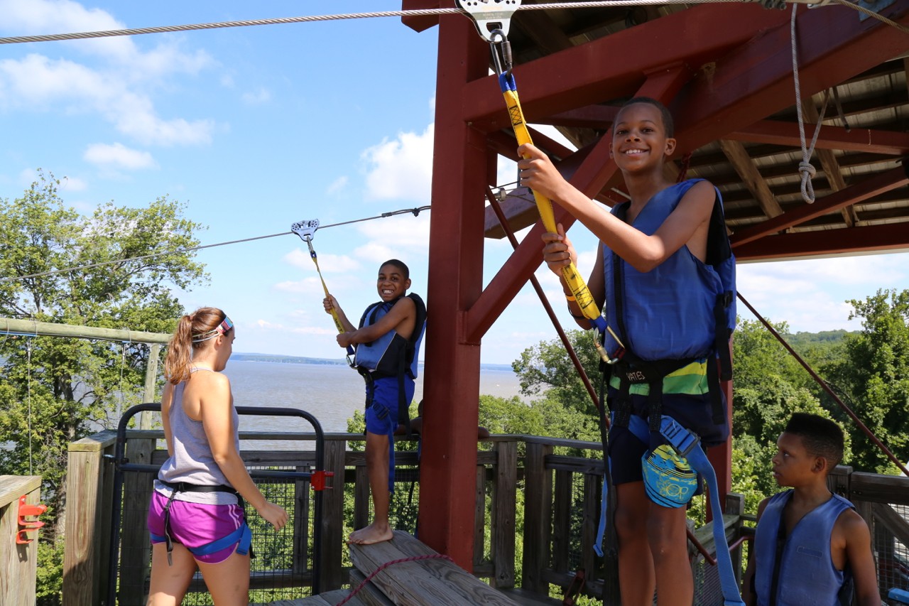 Every day was filled with “firsts” for so many of the kids…first time zip lining, first time on a 3-man adventure swing, first time on a high ropes course, first time swimming in a river, first time kayaking, first time seining (fishing with a net), first time having a campfire on a beach, first time rock wall climbing, first time sleeping away from home, first time clamming, first time exploring in the wetlands, first time discovering bay grass, first time snorkeling, first time tree climbing, first time canoeing, first time doing a beach hike, first time learning how to build a shelter, etc.