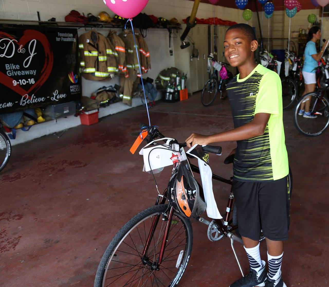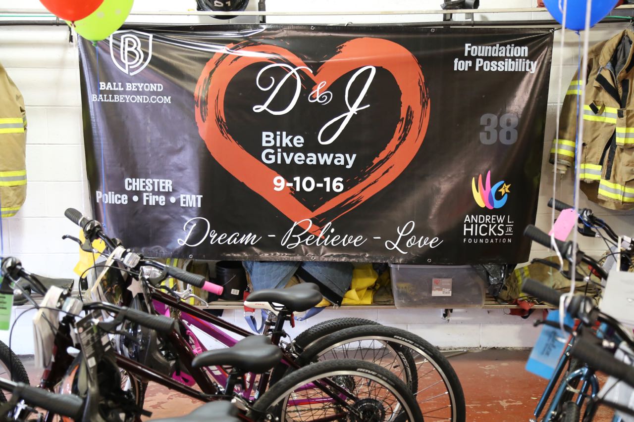 50 campers were chosen and secret phone calls were made to their parents to congratulate them and ask them to attend the Bike GiveAway with their child, but not to spoil the surprise. The Foundation reached out Fire Commissioner Travis Thomas at the Chester Fire Department to ask if the bikes could be hidden inside the fire department and then given away to the children on Saturday, September 10th.