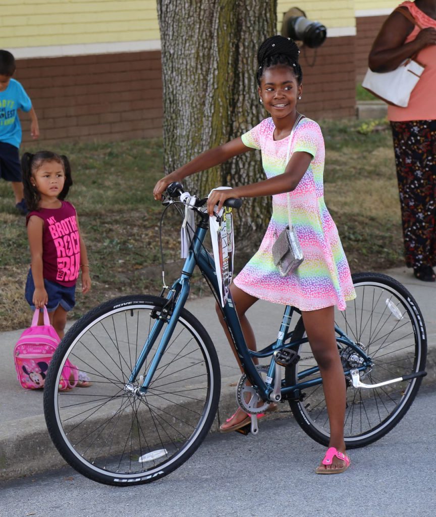 With a shout of “Move that truck”, the bikes, adorned with brand new beautiful bike helmets donated by Dan Knisely, were revealed to their new owners! Dan was able to procure the bikes for the event through Danzeisen & Quigley of Cherry Hill, NJ, who sold the bikes at cost.