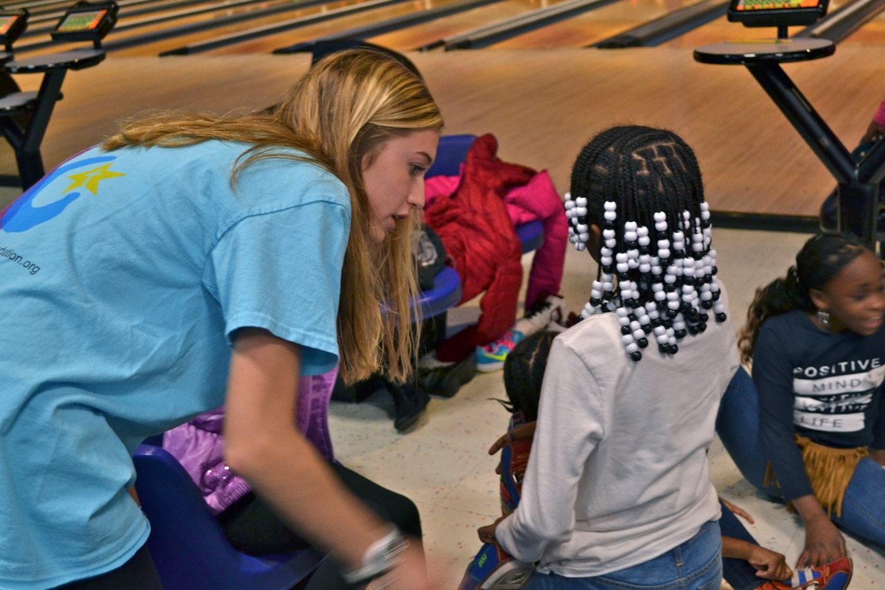 On Saturday November 20 the Foundation held its annual Open Bowl, sponsored by Univest Bank and Trust Co. at The Palace Bowling and Entertainment Center. Henderson High School students Corinne Ahrens and Matthew McCann worked hard to organize the event. Over 130 Chester children ranging from 2nd grade through 5th grade received a warm welcome from over 50 high school and college student volunteers who were excited to spend the afternoon bowling and having fun.