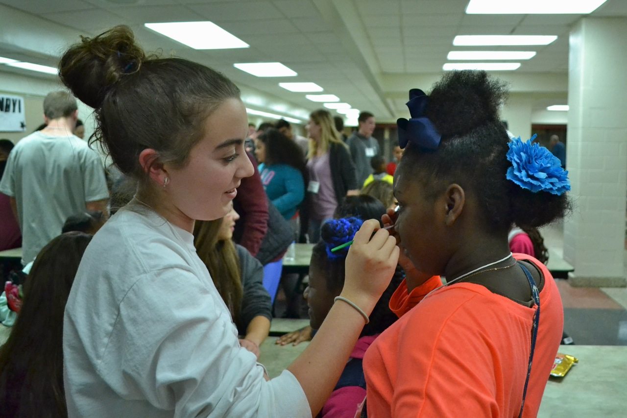 Once the meals were devoured, everyone took part in face painting to show their pride for the Henderson Warriors, as well as taking part in the USA theme for the fan section that night. Everyone was also provided glow sticks and pom poms to cheer passionately for the home team.