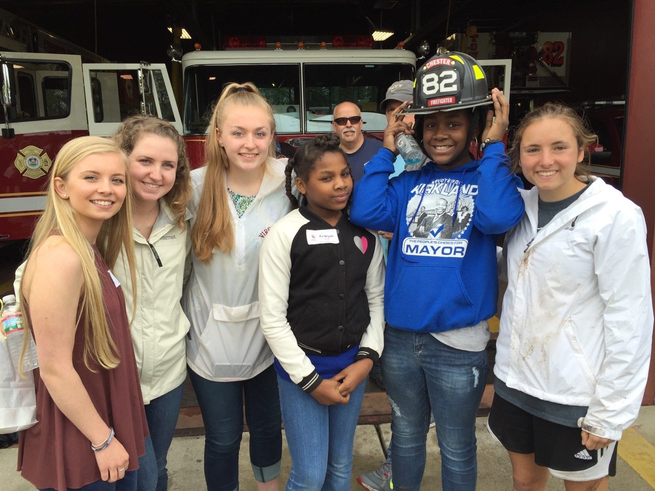 Finally, we sent two teams to the Chester Fire Department. One helped paint the hallway in the Fire Administration office. This project was led by Colorful Remedies, a WC based painting company who donated their time and materials. The other helped with the First Responders’ Appreciation Luncheon. We invited all Fire, Police and EMS personnel for a time of encouragement paired with a delicious and hearty lunch. The students and volunteers wrote thank you notes to all the service men and women and placed them all around the firehouse. We had a raffle table with prize baskets they could enter to win. We invited Chester County Prison Chaplain, Jack Crans, to offer a word of encouragement. Many of our other projects were able to come to the firehouse after they completed their tasks and meet those men and women who work hard to keep Chester safe.
