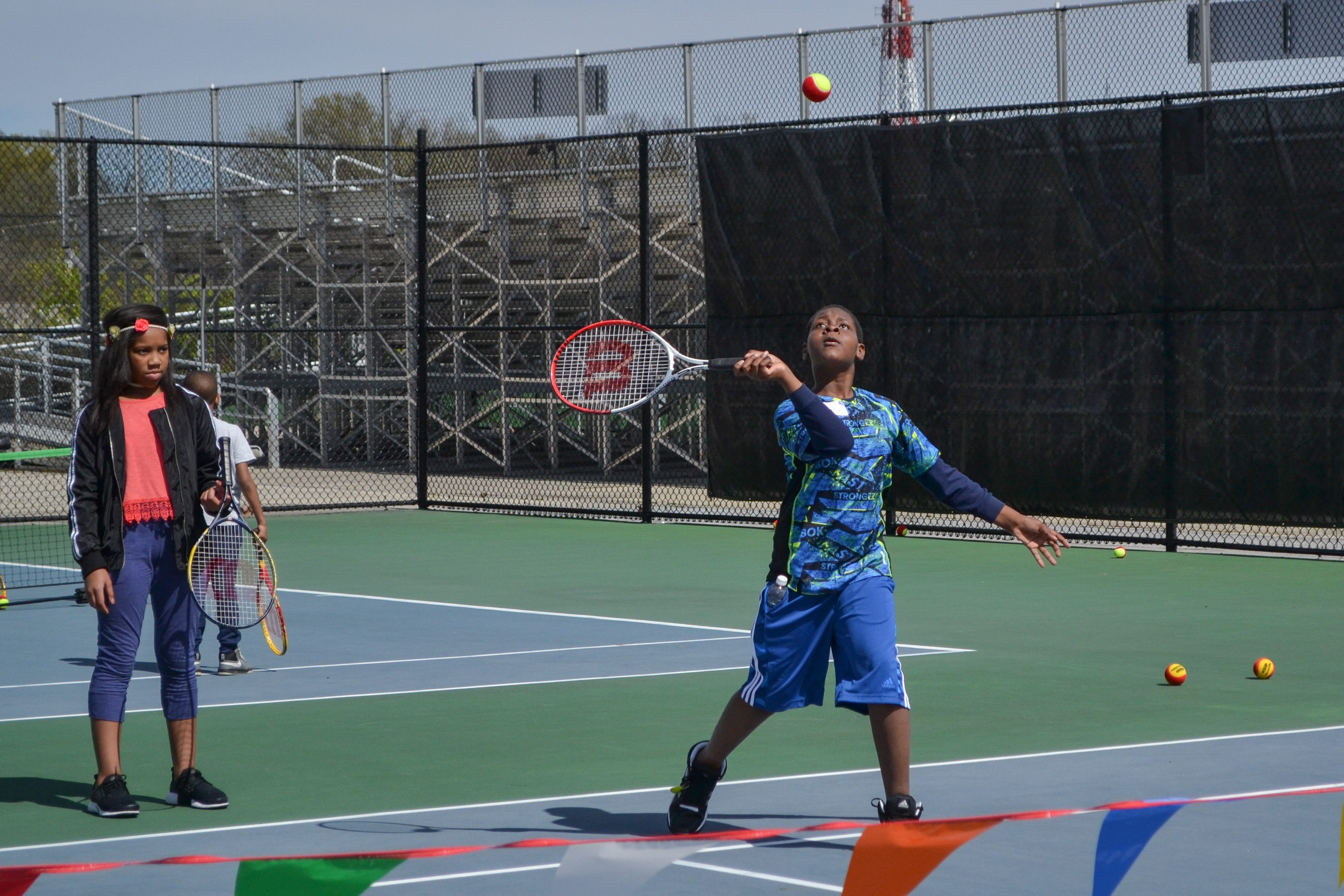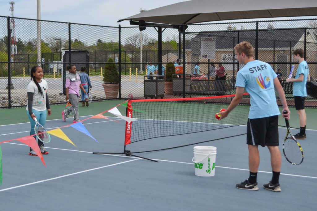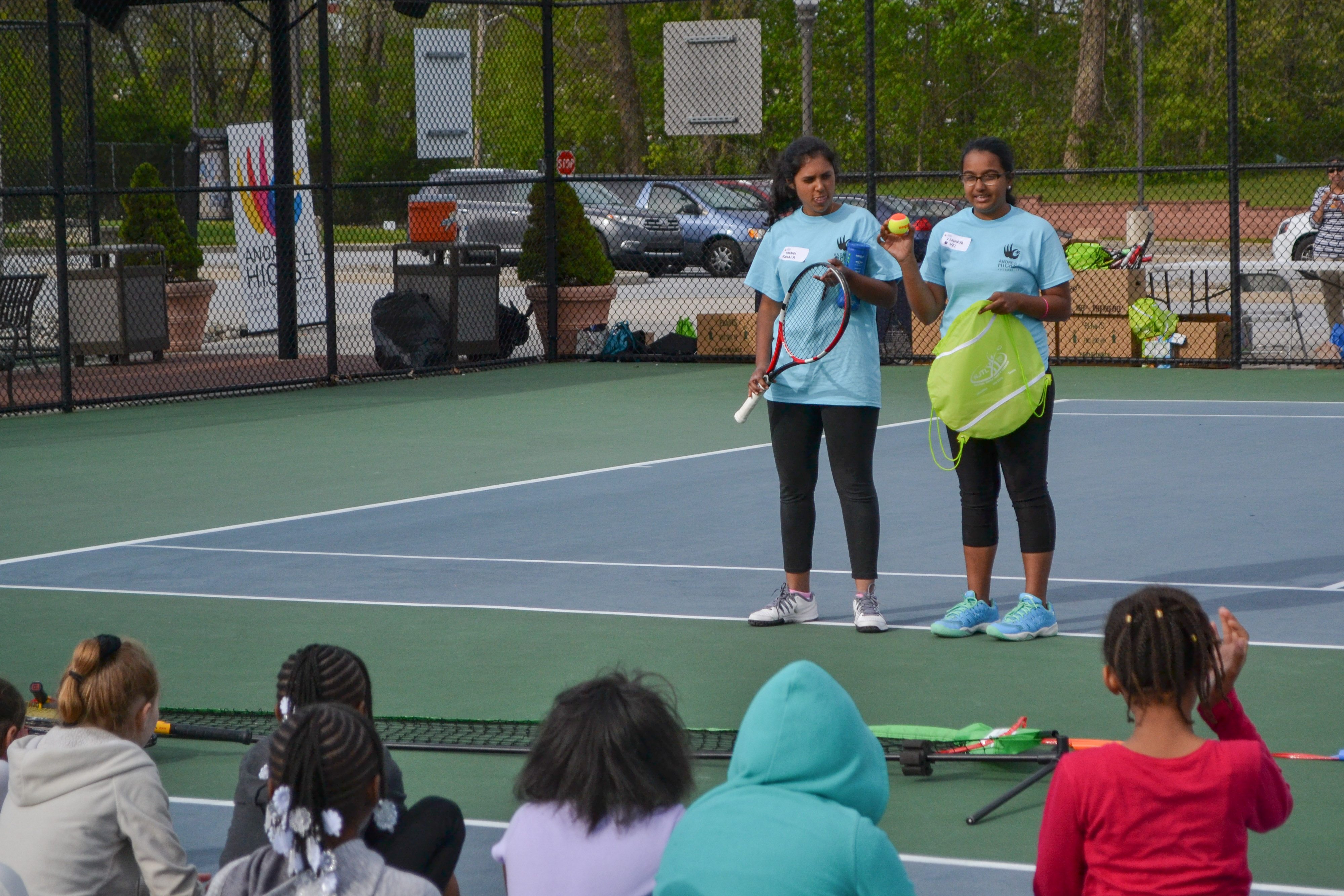 On Sunday April 23, Henderson seniors Pavani Samala and Iswarya Vel organized the 3rd Annual Hendy Tennis Clinic! 43 Chester children grades 2nd-5th were bused out to Henderson High School. Waiting for them were 20 high school tennis players who had volunteered to teach the children how to play tennis for the afternoon. The weather could not have been better, it was a beautiful spring day to learn some tennis! Pavani and Iswarya spent the last few months collecting used tennis equipment and ended up collecting enough that every child could go home with 2 rackets! The day was spent playing beginner tennis games and learning beginner drills, all lead by the high school players. In between drills, everyone broke for a snack and later a dinner of dominos and water ice! At the end of the day when everyone was tired from playing hard all afternoon, the Chester children were treated to a mini match up of 4 high school players, so they could see an example of a real tennis match! It was a wonderful event and everyone left with full stomachs and smiles on their faces! Thank you to USTA for helping to make the event possible!