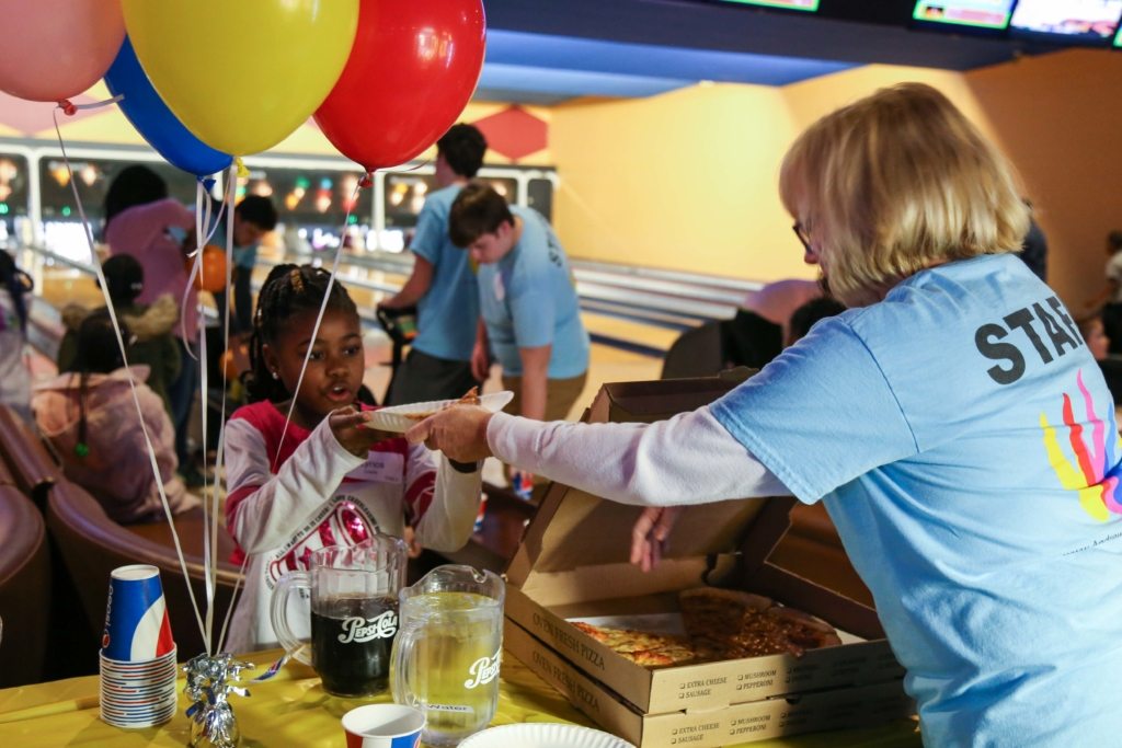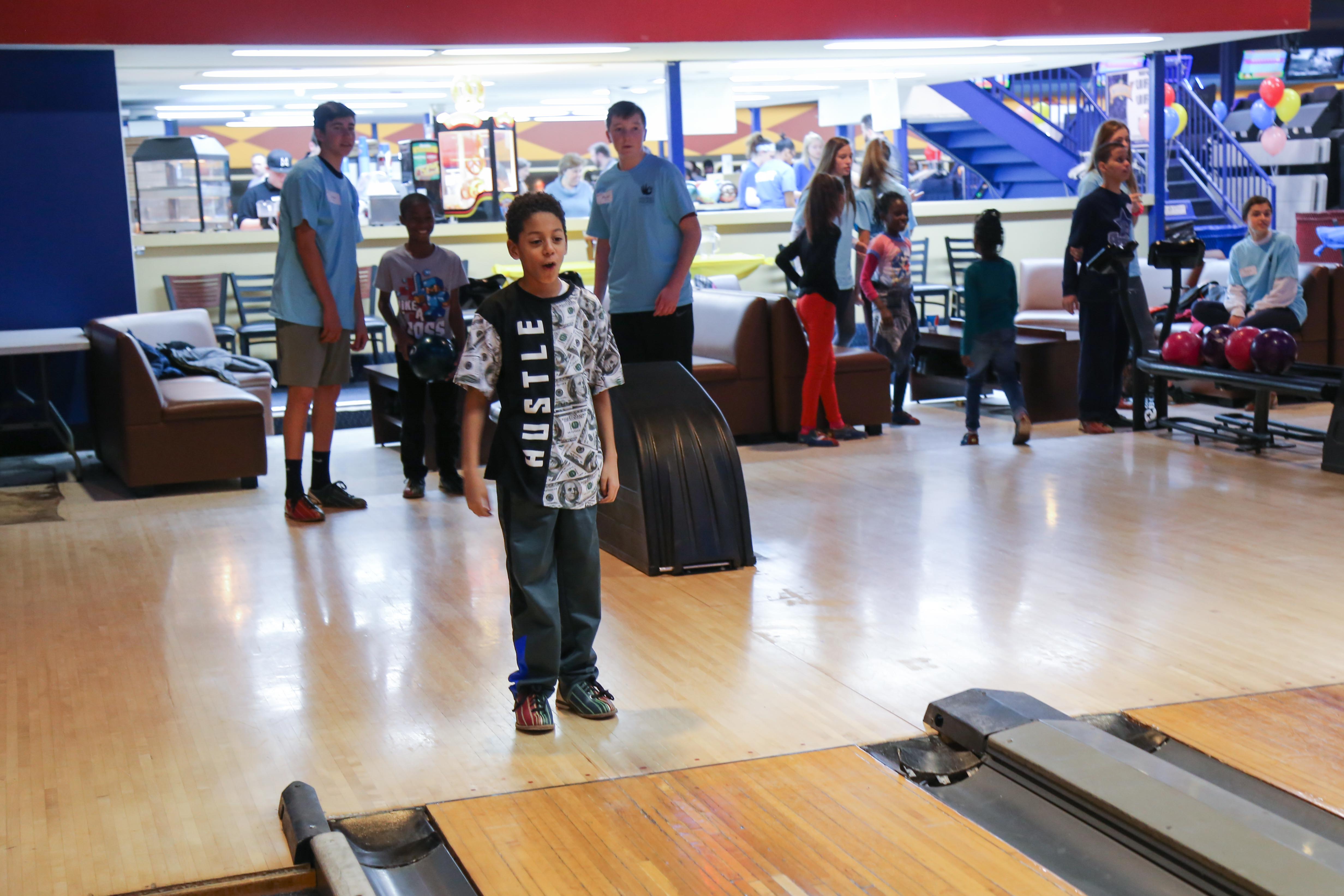 On Saturday January 20th the Foundation hosted its 8th Annual Open Bowl at The Palace Bowling and Entertainment Center! This event was lead by Henderson High School students Corinne Ahrens, Willow Dysard, Sam Chapis, Harry Baker, Hugh McIntyre, and Matt McCann. Over 80 Chester children were bused down to the Palace in Downingtown, PA, where over 50 West Chester area high school student volunteers were waiting for them to spend the afternoon bowling together. When the children arrived they were taken to their assigned lane and met their new buddy for the afternoon and they immediately began bowling. Over the course of the afternoon pizza, drinks, and cake were served to help fuel the fun. And of course it wouldn’t be a true Open Bowl party without the Palace DJ facilitating an awesome dance party that had everyone joining in!