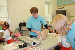 school student or adult who acted as their personal shopping assistant. When the children were all finished choosing their gifts, they were treated to hot chocolate and cookies while their gifts were wrapped for them for Christmas.