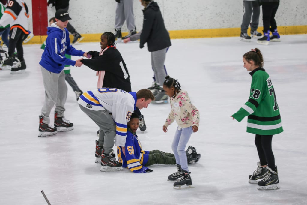 On March 31, 2019 the Foundation held its 9th Annual Learn-To-Skate event at Ice Line in West Goshen. The day consisted of over 70 Chester 3rd – 5th graders being bused to Ice Line where over 70 Chester county high school skating volunteers were waiting to spend the day with them on the ice. This amazing event was organized by Henderson High School students, Travis Czukoski, Justin Misher, Lauren Young, and Kaylee Needham. Each Chester child was paired up with their own personal ice skater – many of whom were Ice Hockey players themselves. Once each child had a buddy for the day it was time to get everyone’s skates on and hit the ice.