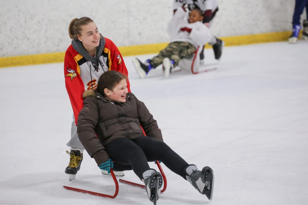 Each Chester skater even got there own ice hockey jersey to wear and take home, curtesy of our awesome volunteers. The children were taken out to the ice to learn how to skate. While we had some first timers there was a learning curve for some, we also had some returning participants who were eager to show off what they had learned the previous year. It was so awesome to see the young skaters slowly build up their confidence from gripping the wall or buddy, to slowly being able to skate on their own with lots of encouragement from their high school skater.