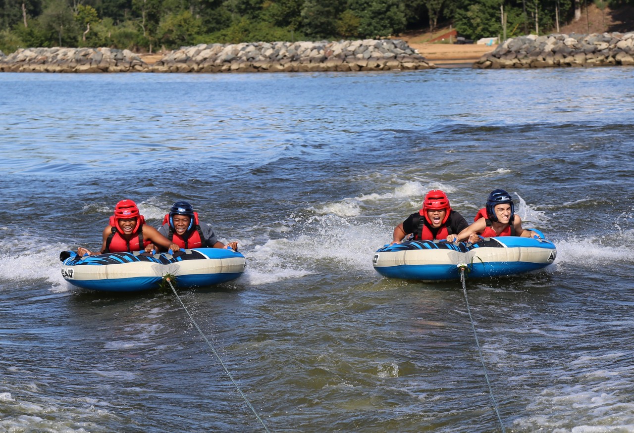 Friday’s activities included the high and low ropes courses, zip-lining into the NorthEast River, rock wall climbing, wetland exploration, a river boat ride, tubing on a motor boat and seining (fishing with a giant net).