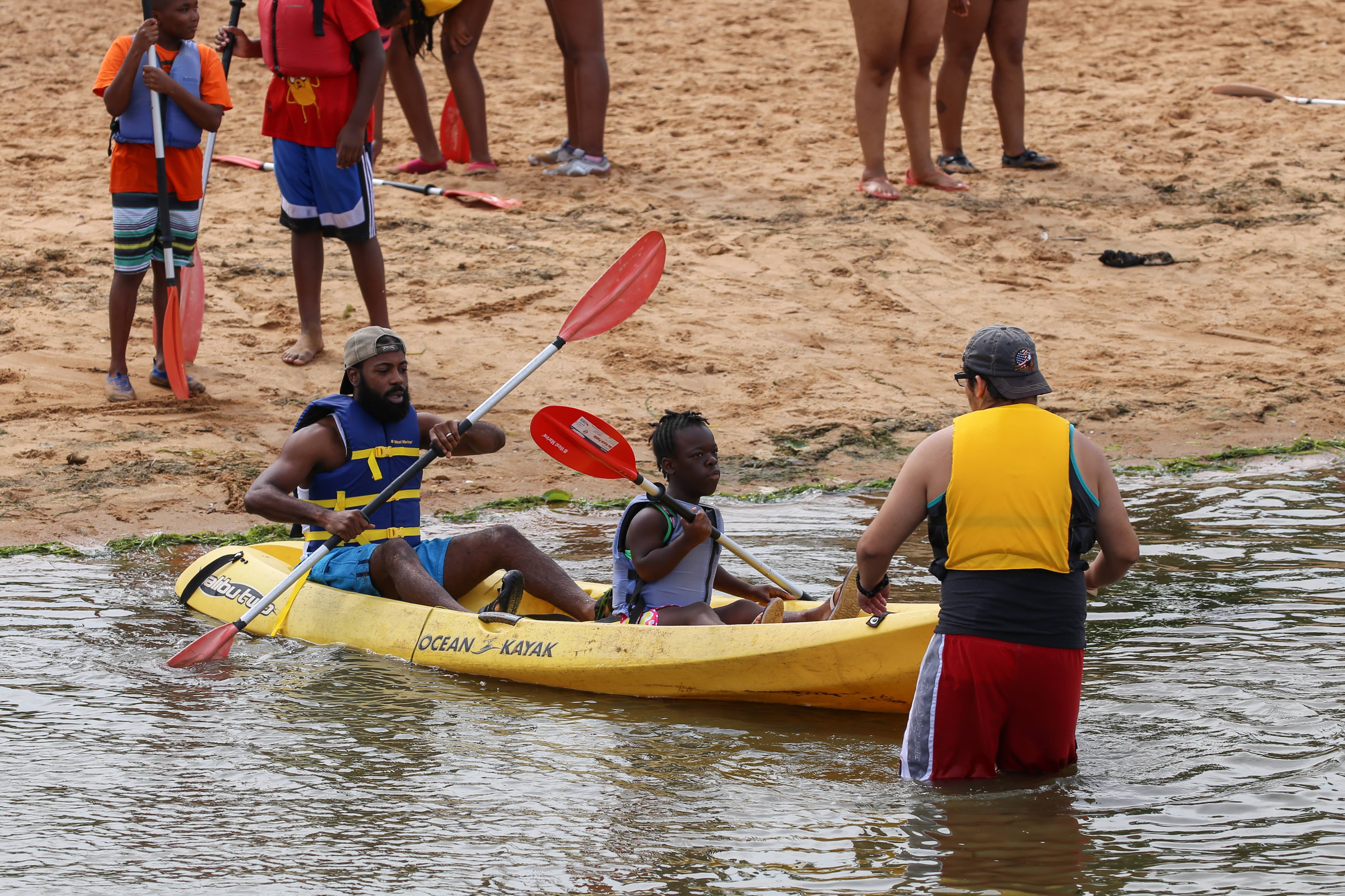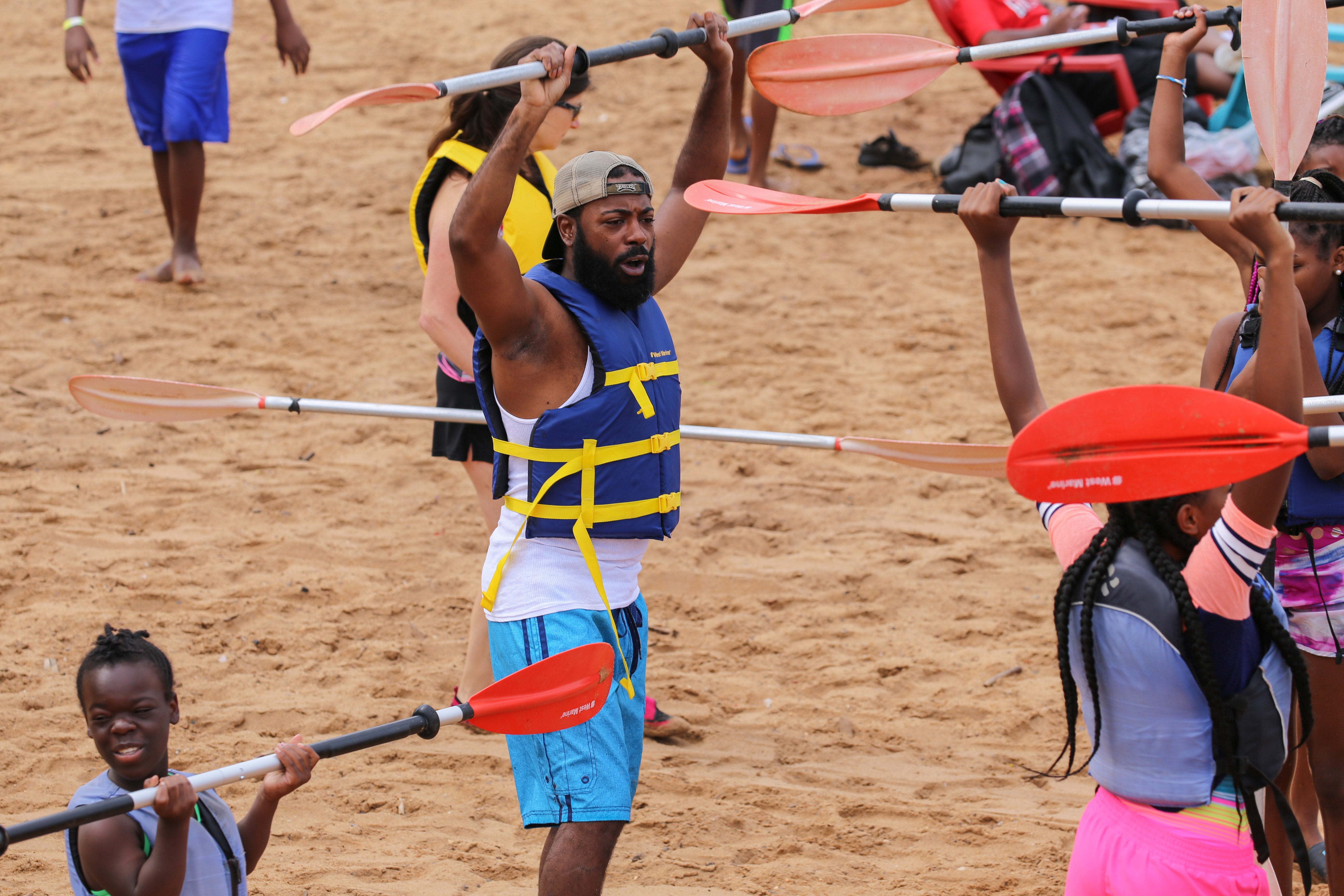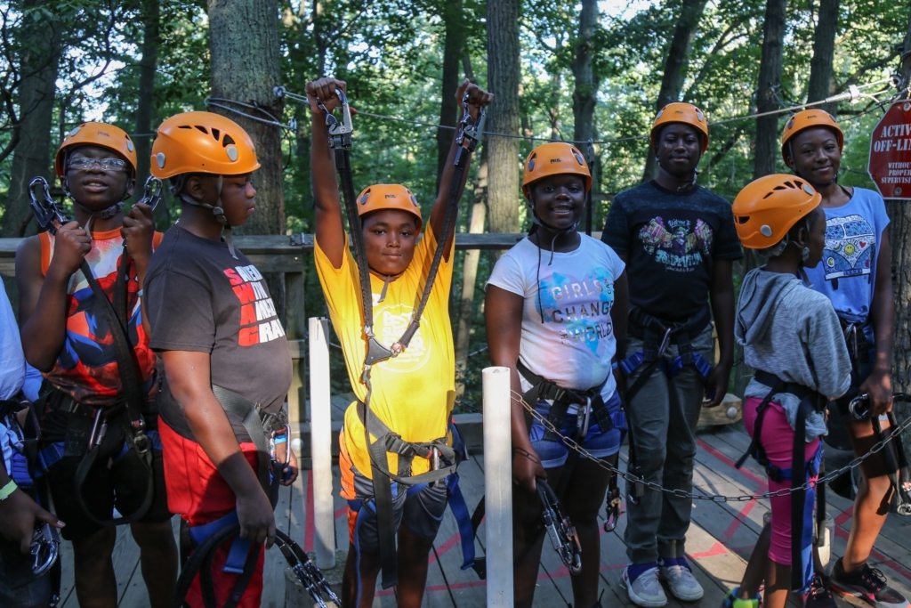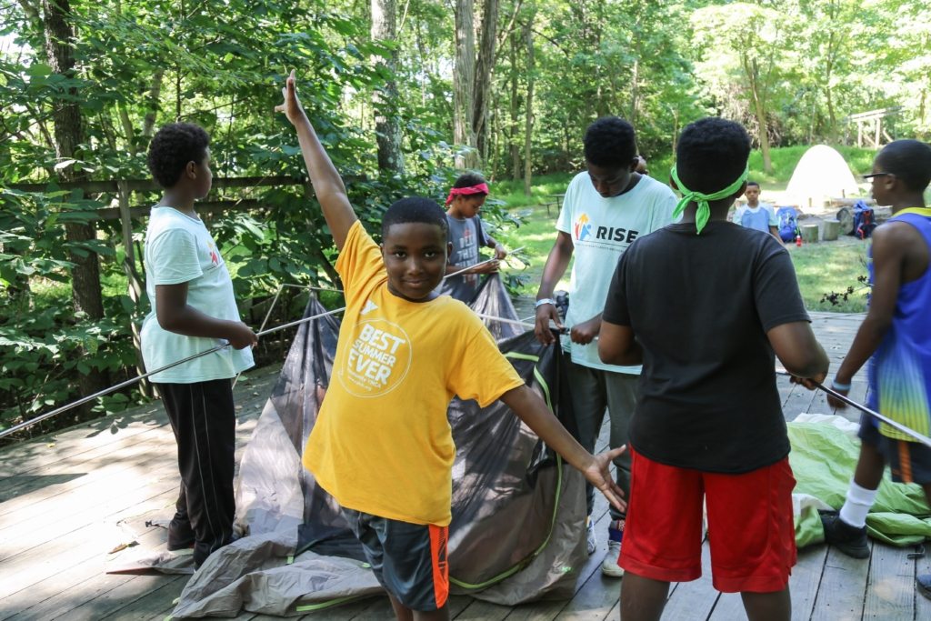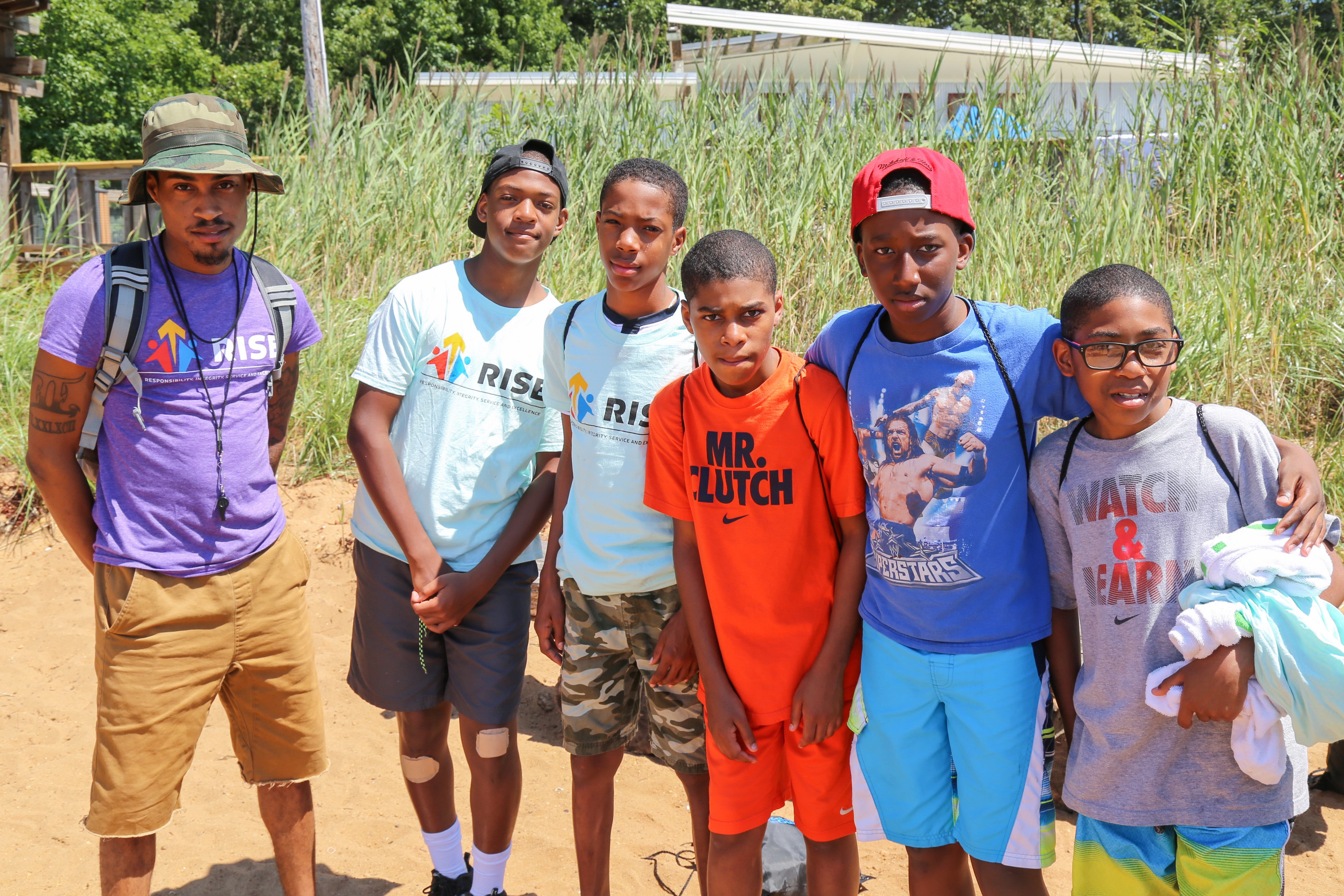 On Sunday August 6, RISE camp gathered for another year up at NorthBay Adventure Camp in Maryland. RISE camp is the same week the Foundation puts on their Camp Lionheart, but while that is for rising Chester second through 6th graders, RISE is for rising 7th through 1oth graders. More is asked from the RISE camp and they are pushed to step out of their comfort zone and experience tougher scenarios. They are taught different survival skills and get to spend one night out in the woods sleeping in tents that they set up all by themselves! Through out the week they work on different team building activities as well as bonding as a group to become close like a family. For these are the same kids that will then participate in the RISE after school program every Thursday during the school year. So this camp is a great introduction to what is going to be asked of the teens and who they are going to be working with to continually help each other grow into better people and elevating their potential!