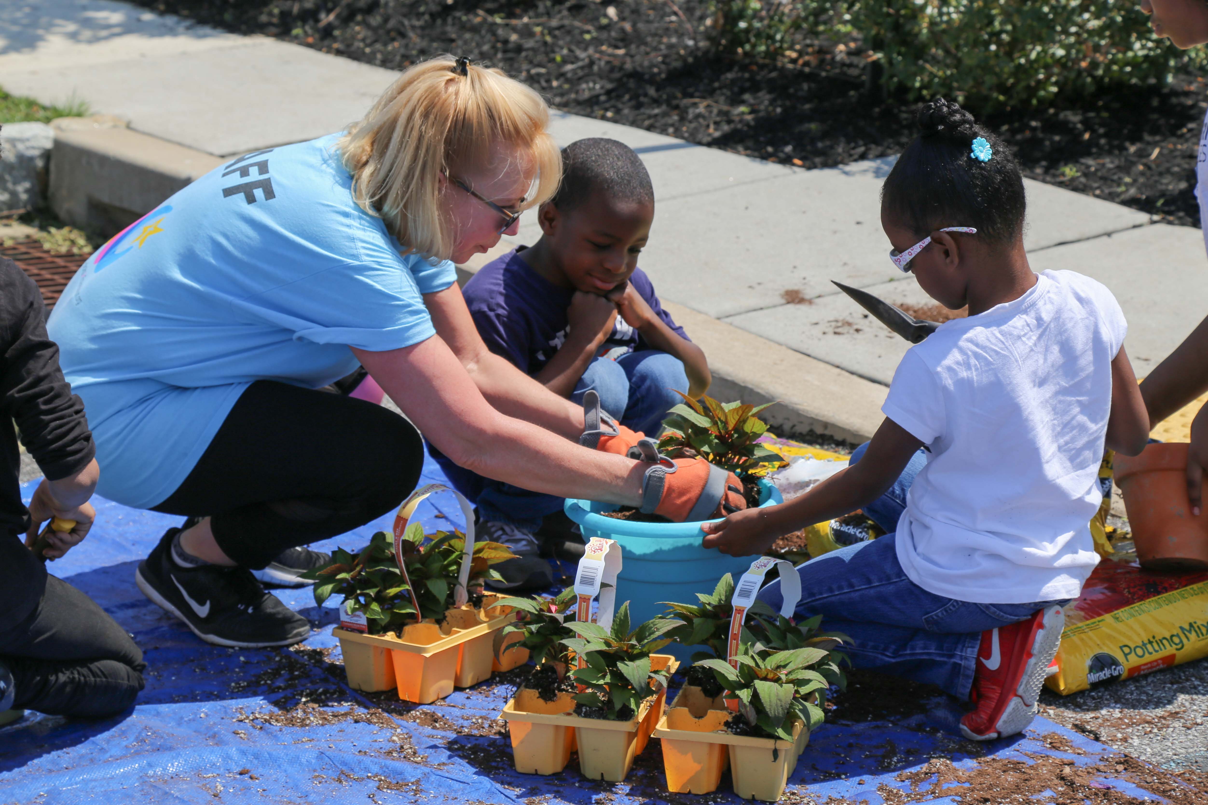 There were various activities going on across the city including planting flowers outside both the Chester police station and firehouse – which also included a luncheon for the first responders. There were groups weeding and planting flower beds across multiple locations including the Madison St. Park, City Team, Fairgrounds Homes, Crozer Library, Wesley House, and the Family Management Center. In addition there was a group at Ruth Bennet Community Farm helping weed the farm, and move mulch and gravel, as well as clean up the property in any way. The day prior Hazley Builders came out to the farm and built two beautiful structures that were desperately needed at the Farm, we are so grateful for their willingness to help. Another new feature to the event this year was a flower potting station at Fairgrounds Homes, where flower pots were donated for the residents to come plant flowers and take them home, while only a few residents came out – the Guides and Braves filled the pots and gave them out to very gracious residents. There was also a group at the Crozier Library who painted beautiful bird houses and hung them through out the park around the library.