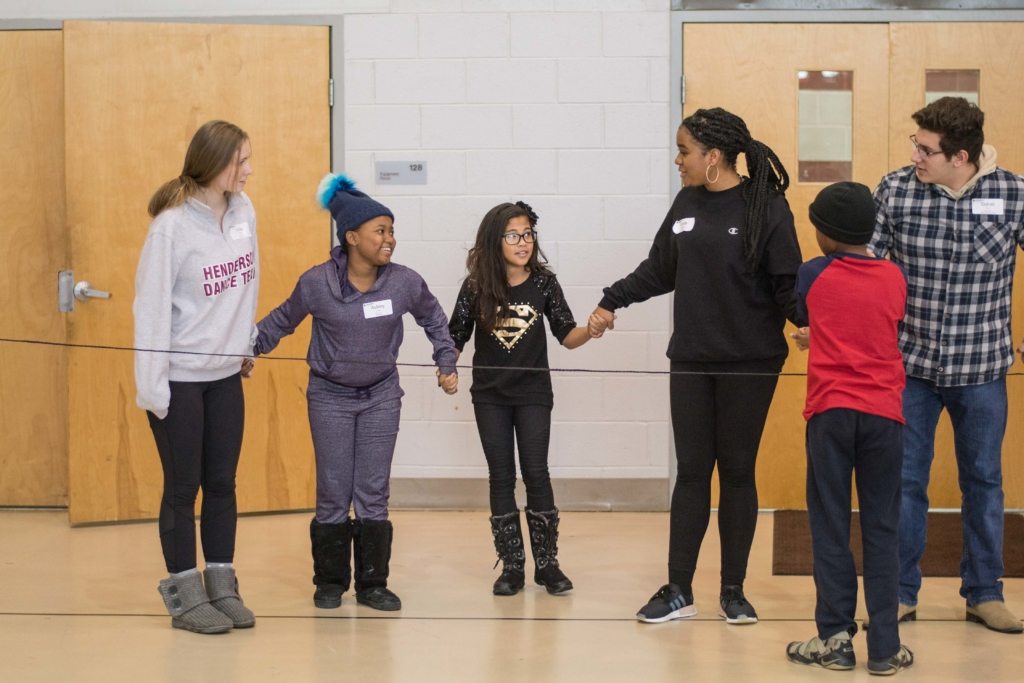 On January 6th Warrior Guides opened up the new year with a brand new event – Team Building Day at Church Farm School (CFS). The group met at the school and were treated to a tasty buffet lunch in CFS cafeteria served by their lovely staff. Many children went up for seconds and thirds the food was that good! After everyone was all fueled up they trekked over to CFS gymnasium. There, over 25 CFS students were waiting with 12 different team building stations. The group split up into smaller groups and proceeded to rotate every 10 minutes through the stations. Each activity was lead by CFS students and had the Braves and Guides work on their team building and how to work together as a group or pair to achieve success. Over halfway through the school year and its great to see the different pairs already have such a bond and were able to work together so well! After each station the groups would debrief to go over and reflect what worked and didn’t work about their strategies.